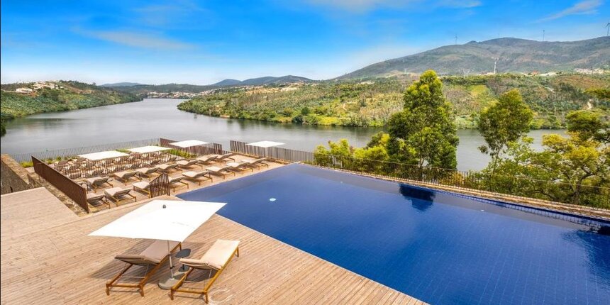 Set amidst the scenic beauty of Castelo de Paiva, the Octant Hotel features a breathtaking infinity pool with views of the Douro River. The hotel boasts 55 rooms and 6 suites, each with sweeping panoramic vistas. The interiors are elegantly styled, blending modern design with the natural landscape and abundant light. Guests can enjoy two distinctive restaurants that showcase local cuisine and an impressive wine selection featuring premium local labels, along with access to a luxurious spa and a fully equipped gym.